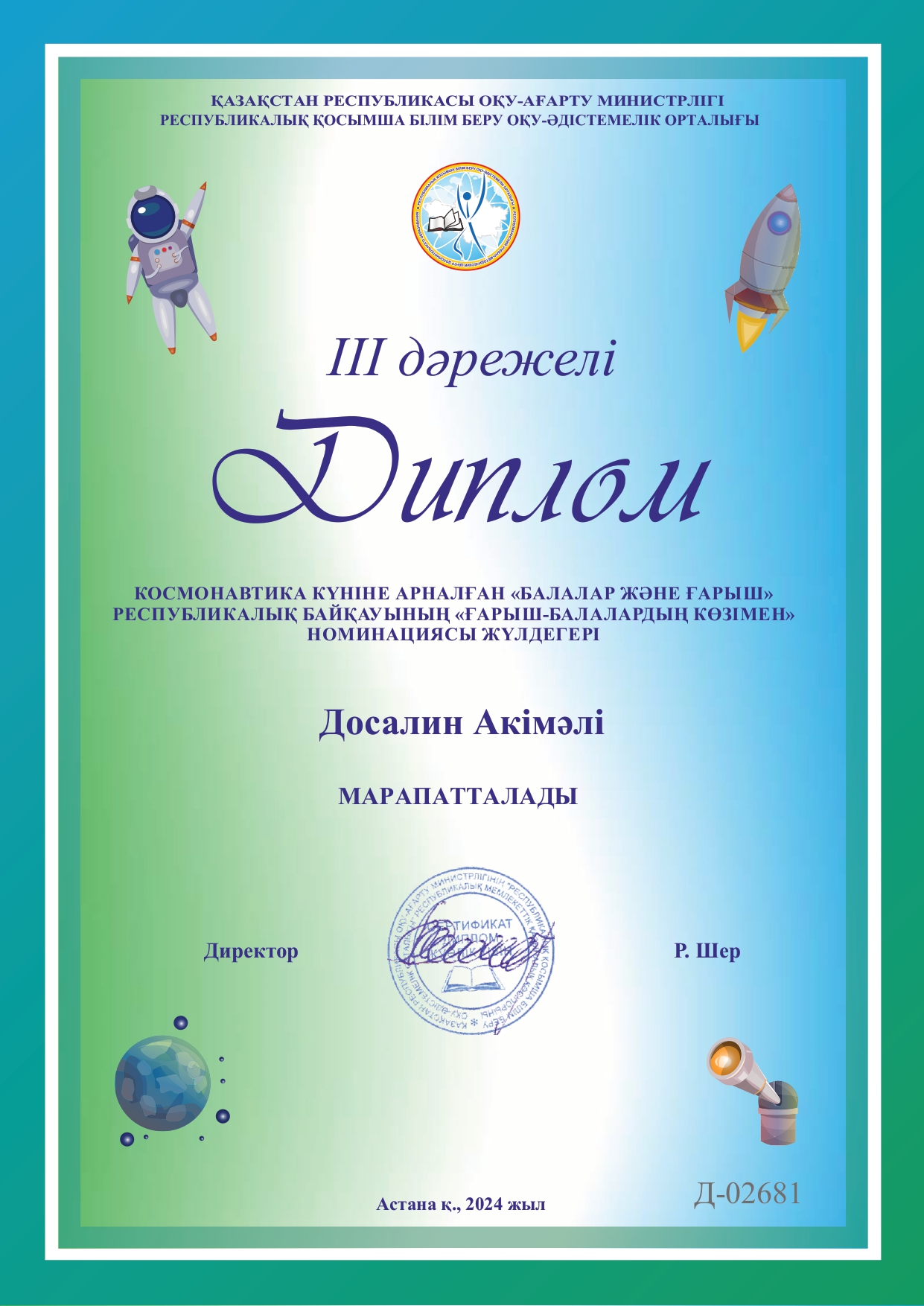 Республикалық «Балалар және ғарыш» байқауының жеңімпаздары