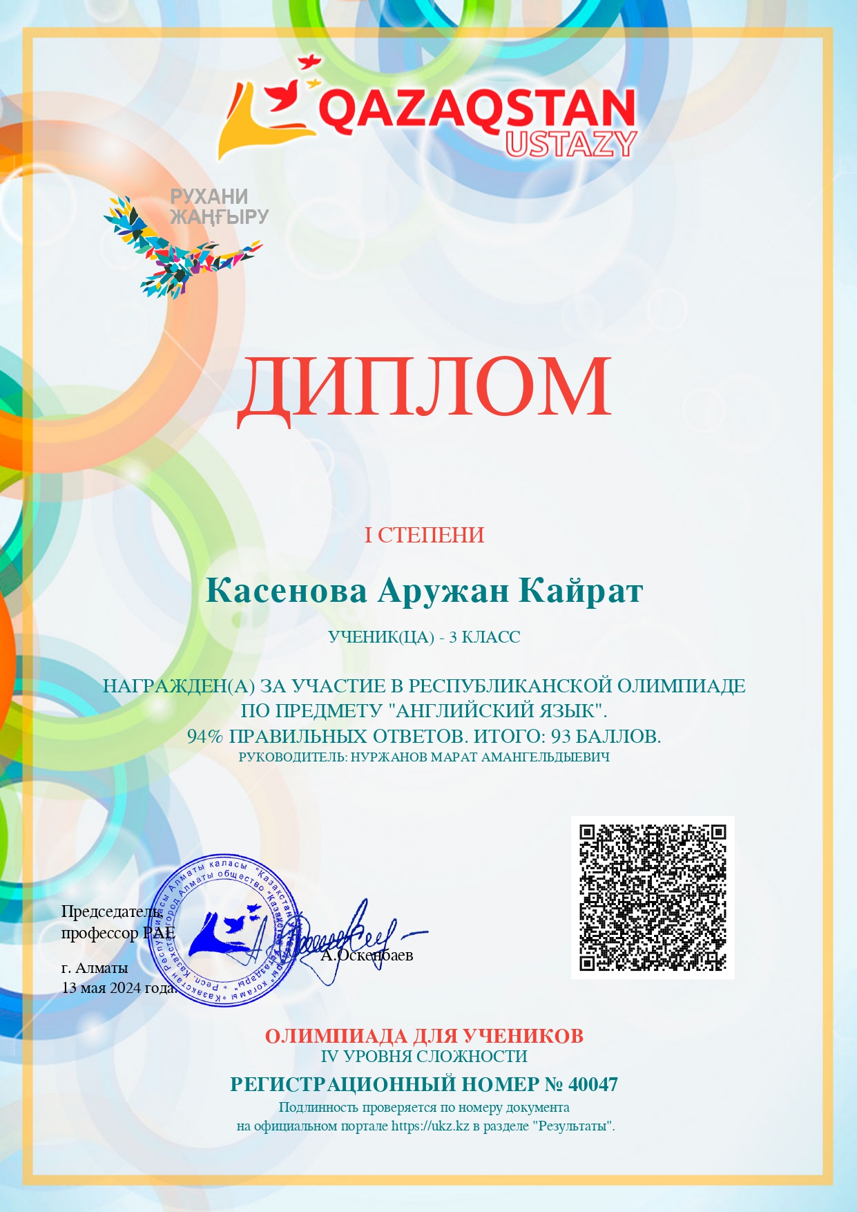 Ағылшын тілі бойынша республикалық олимпиада жеңімпаздары