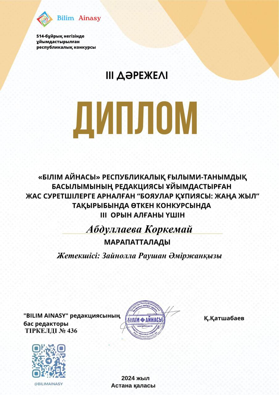«Бояулар құпиясы: Жаңа жыл» республикалық байқауының жеңімпаздары