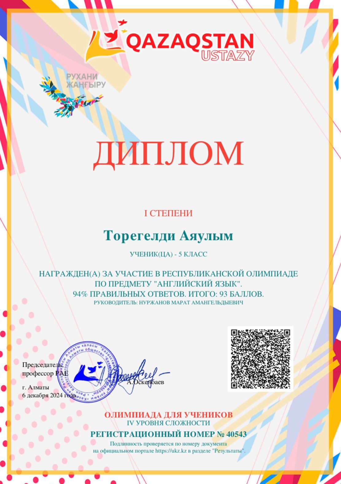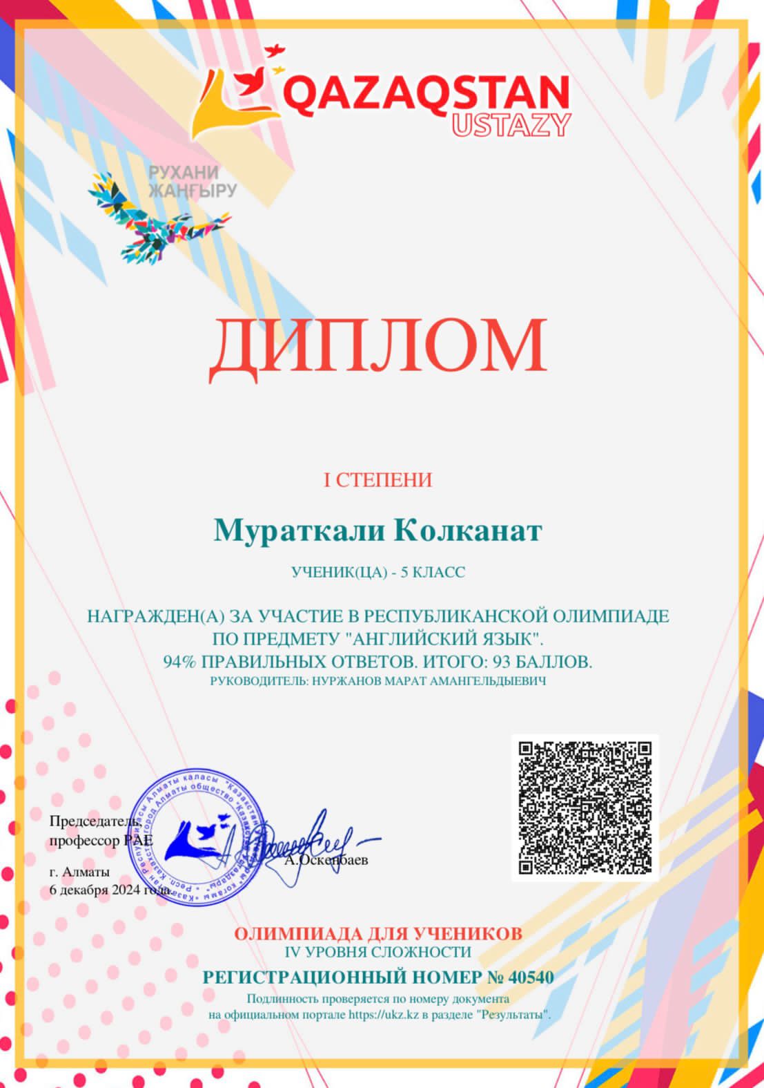 "Қазақстан ұстазы" порталы өткізген ағылшын тілі бойынша республикалық олимпиадаға "Мектептен тыс білім беру орталығы" МКҚК-ның "Happy English" үйірмесінің оқушылары қатысып, жүлделі орындар иеленіп, дипломмен марапатталды.