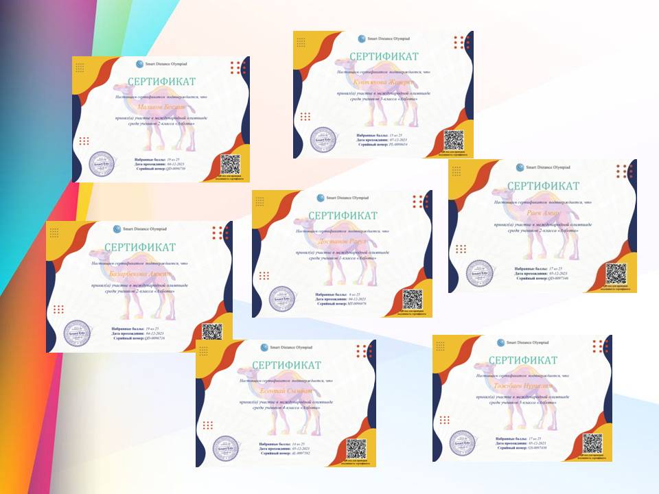 Хромтау аудандық білім бөлімі "Мектептен тыс білім беру орталығы" МКҚК-ның "Математика және логика" үйірмесінің оқушылары "Ақбота" халықаралық оқушылар арасындағы қашықтық олимпиадасына 24 бала қатыстырып, 1 орынға - 2 оқушы, 2 орынға-5 оқушы, 3 орынға-10 оқушы ие болып дипломмен марапатталды. 7 оқушы қатысқаны үшін сертификаттар иеленді.