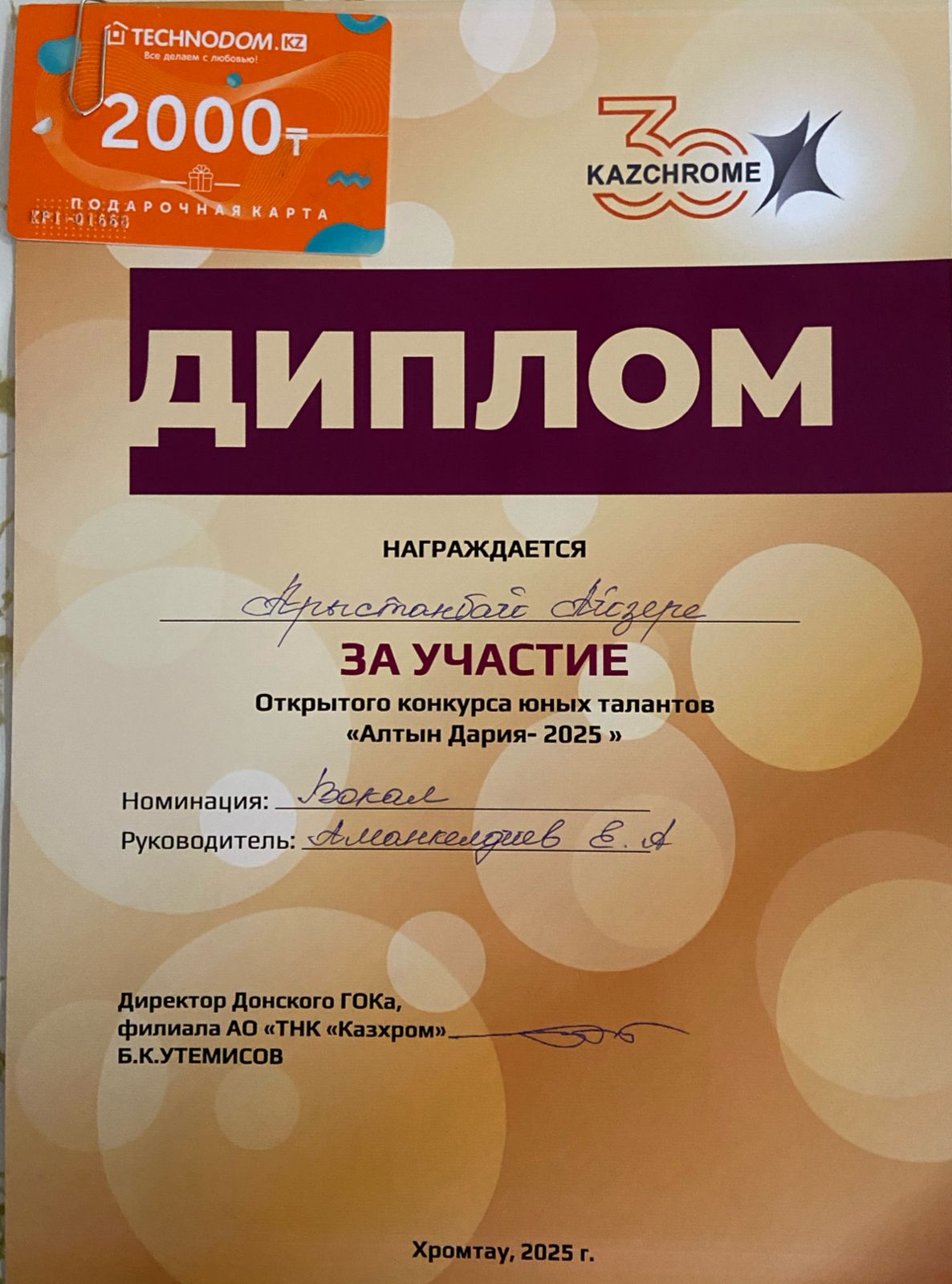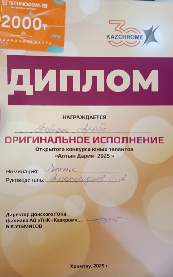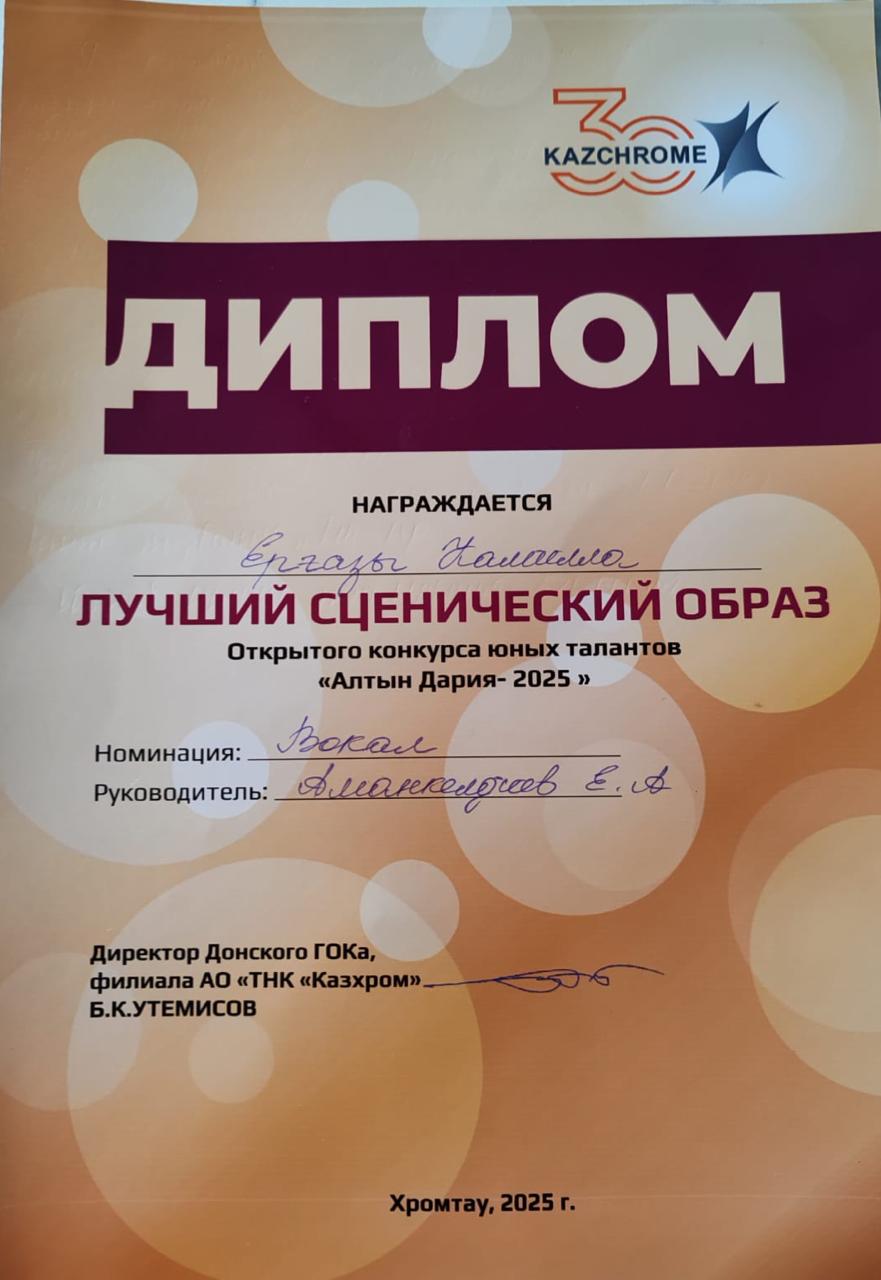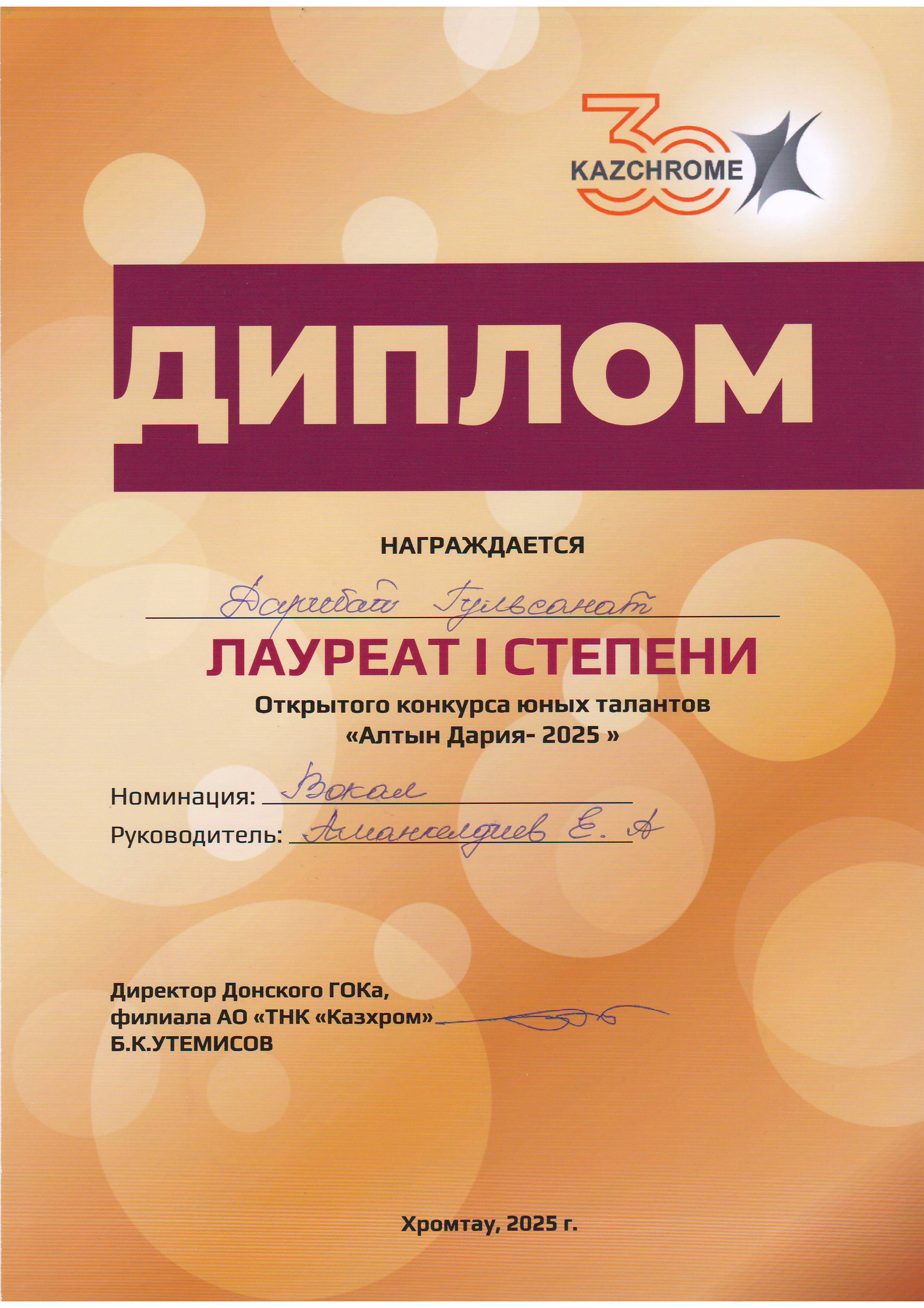 Ағымдағы жылдың 16 ақпанында Кеншілер мәдениет үйі ұйымдастырған "АЛТЫН ДАРИЯ" атты байқауында"Жалын" вокал үйірмесі оқушылары үздік өнер көрсетіп, Дарибай Гульсанат І дәрежелі диплом, Рақышова Амира ІІІ дәрежелі диплом, Ерғазы Камилла «Үздік сахналық бейне» номинациясымен , Бейсен Арай «Үздік орындау» номинациясымен, Арыстанбай Айзере қатысқаны үшін дипломмен марапатталып, сыйлық сертификатын иеленді.