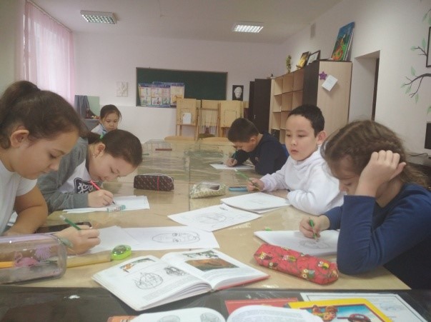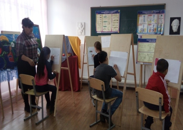 Посещение выставочного зала Актюбинского художественного лицея, Эрмитаж в Санкт-Петербурге, Пушкино, Петергоф, Академию искусств им. Шпиглеца, музей искусств в Астане, Казахский национальный университет искусств в Астане – дали детям кружка «Ультрамарин» очень много полезной, интересной информации и способствовали достижению необходимых результатов.